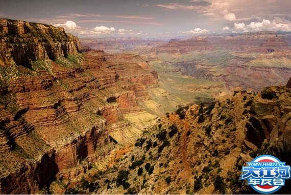 大峡谷国家公园占地 904平方英哩,成立于1919年。大峡谷在1979年纳入联合国教科文组织的世界遗产名单。大峡谷国家公园位于美国西部亚利桑那州凯巴布高原。面积2724.7平方千米。又称“科罗拉多大峡谷”。呈东西走向,全长350千米,平均谷深1600米。峡谷顶宽6~30千米,峡谷往下收缩成V字形。两岸北高南低,最大谷深1500多米。谷底宽度不足 1000米,最窄处仅120米,科罗拉多河从谷底流过。